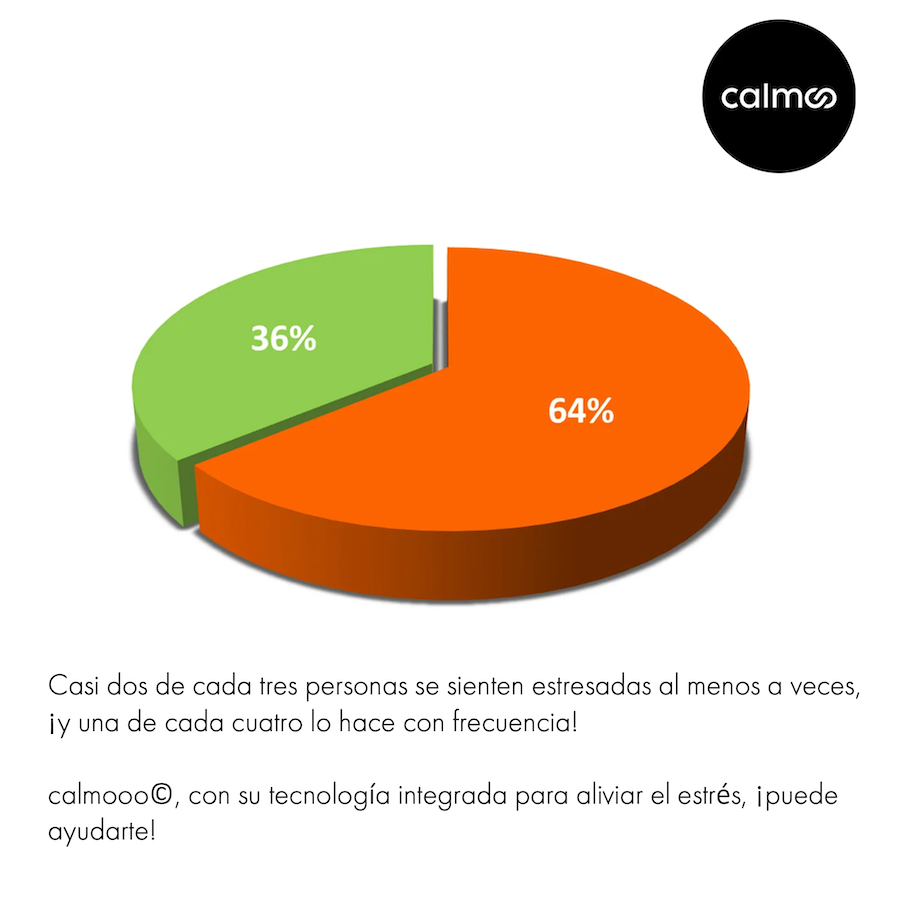 Imagina: Un día agitado ha terminado, tus pensamientos se aceleran, y sin embargo, un solo instante con calmoo© basta para que el mundo se pare. La tensión se disipa, una sensación de ligereza y serenidad te invade, y encuentras el camino de regreso a lo que realmente importa: tu bienestar.