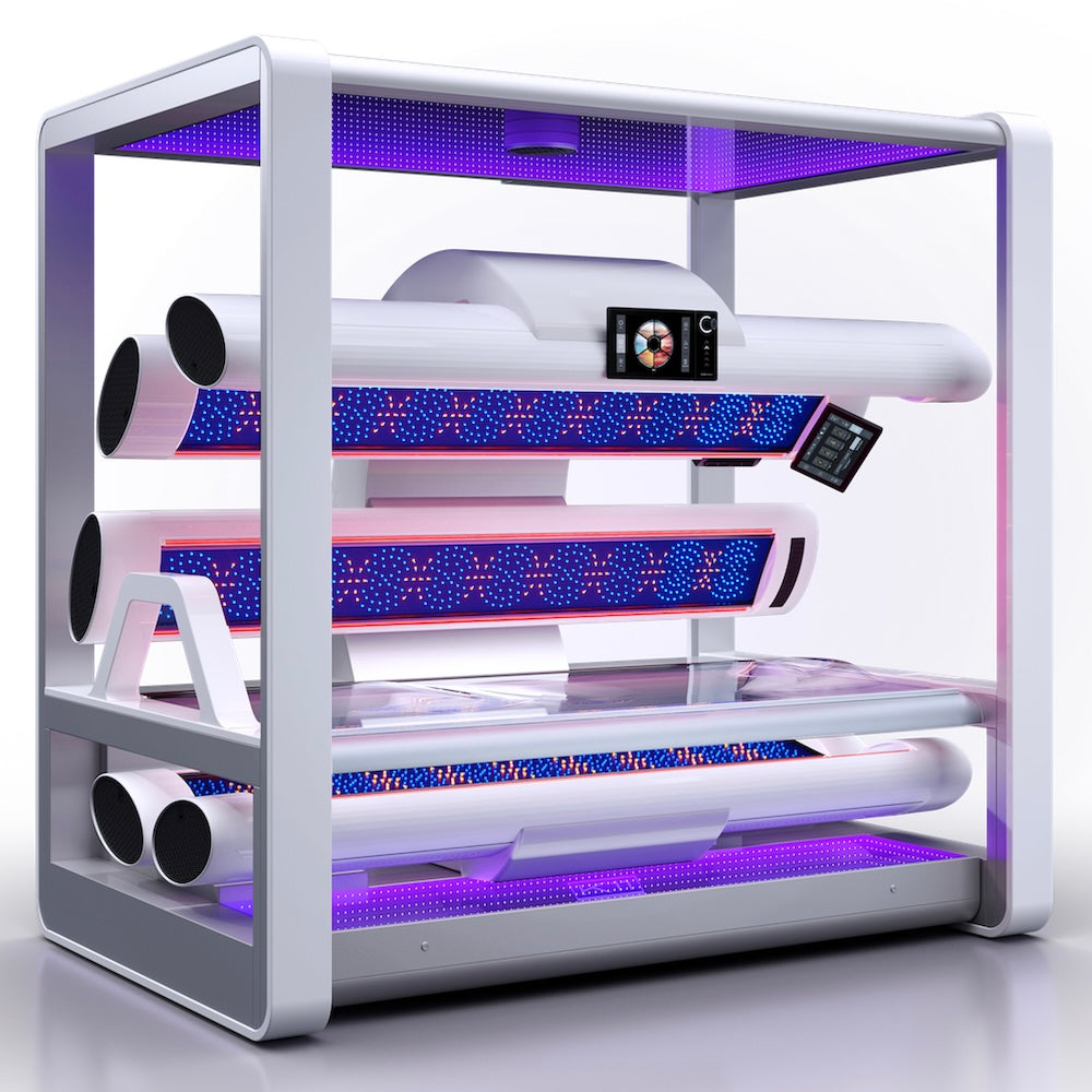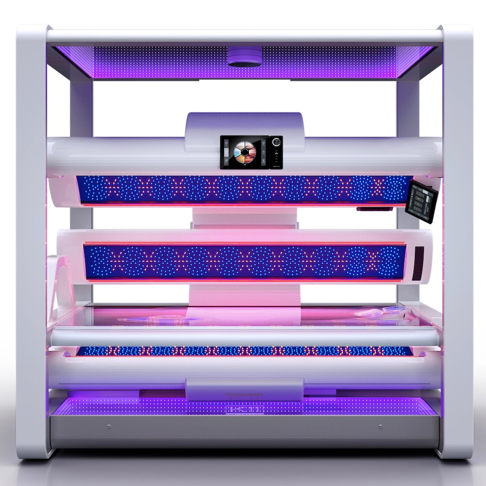 - Dynamic Sunshine: prepara tu piel para las vacaciones desarrollando tu pigmentación, pero obteniendo un color instantáneo. El sistema de bronceado inteligente ajusta automáticamente el balance de radiación UV durante la sesión, dividiendo el bronceado en tres fases, cada una de ellas con una composición de luz única.